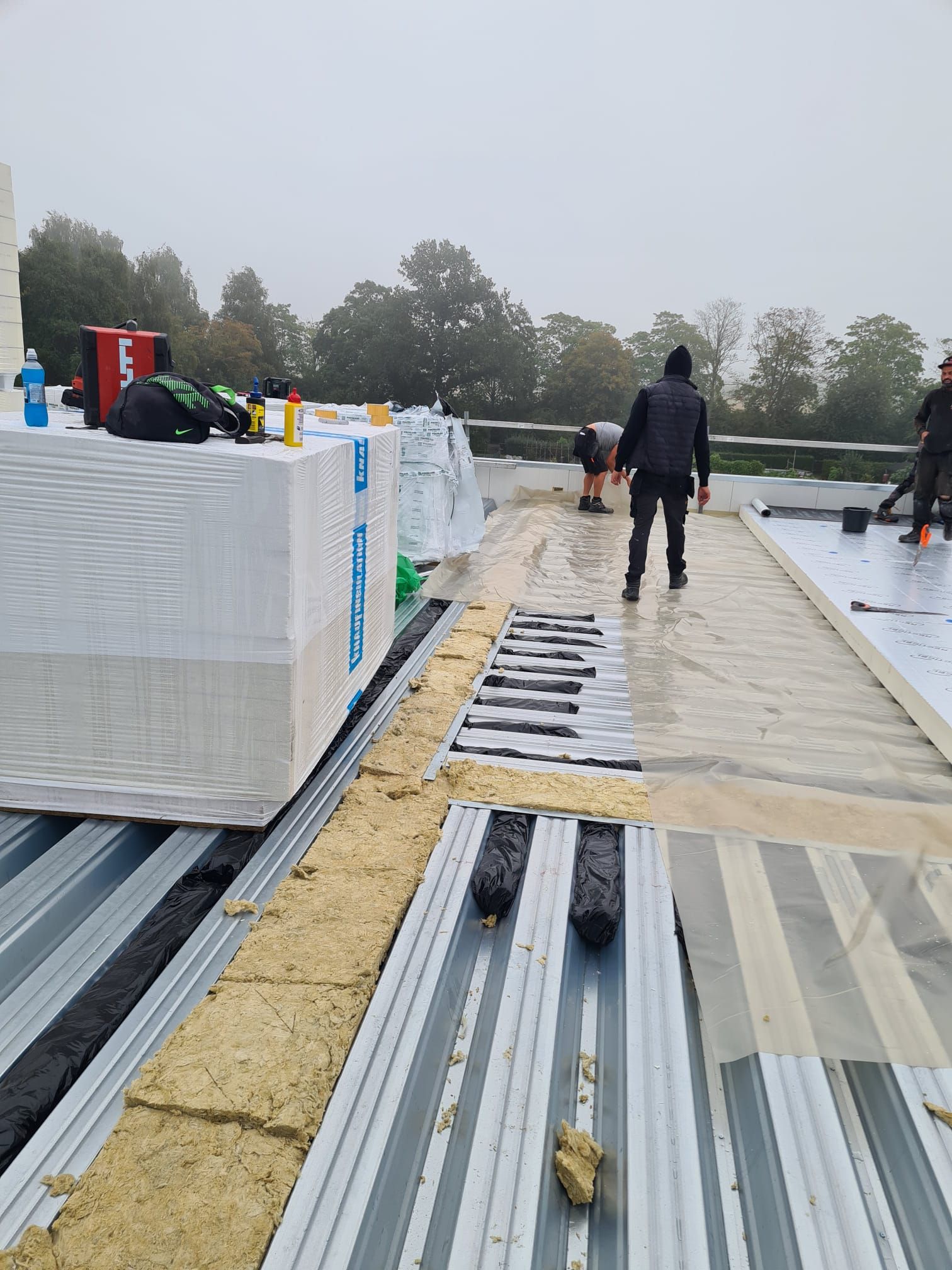 Het dak van het nieuwe gebouw bestaat uit een staalconstructie, voorzien van een dampremmende PE-folie, PIR-isolatie met een dikte van 14 cm en een tweelaags mechanisch bevestigde bitumen dakbedekking. Voor dit project maakt Daxateur gebruik van hoogwaardige materialen van de Mapei Groep, een fabrikant waar wij eerder succesvol mee hebben samengewerkt en die bekendstaat om duurzame en betrouwbare oplossingen.